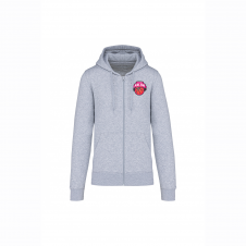 Fermeture zippée nylon ton sur ton. Capuche doublée 100% coton, coton jersey 180g.